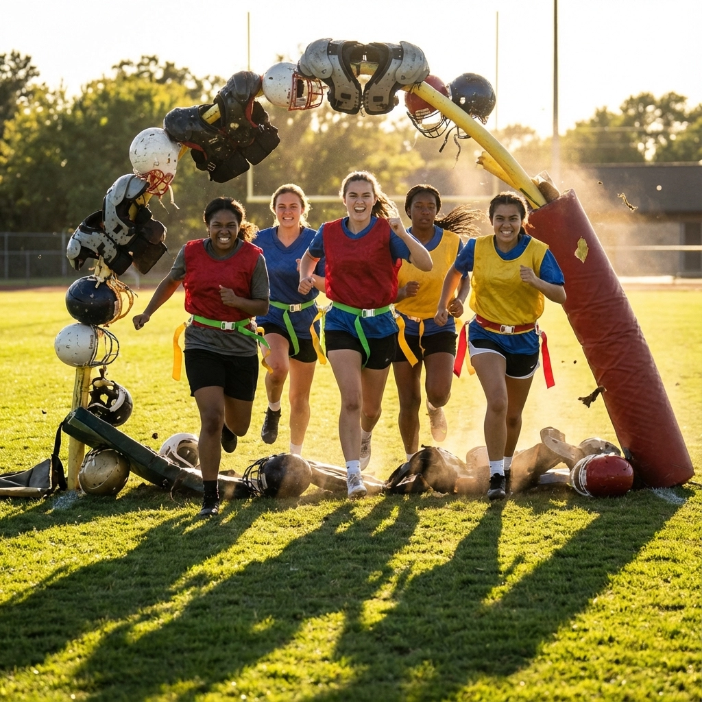 But the real game-changer goes deeper than cost. Flag football removes the physical intimidation factor that keeps many girls away from contact sports, while still delivering the strategic complexity, teamwork, and athletic challenges that develop confident young women.